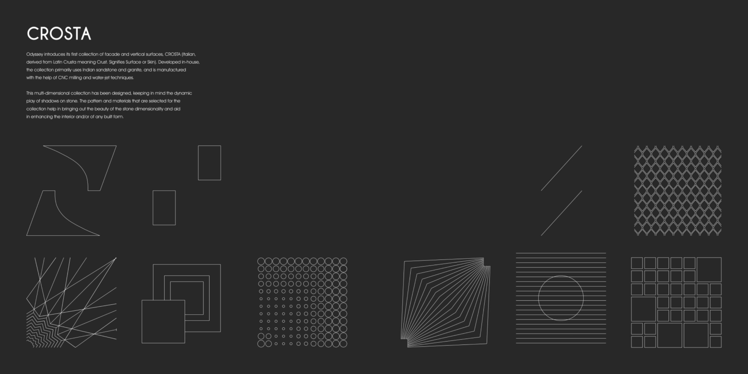 This multi-dimensional collection has been designed, keeping in mind the dynamic play of shadows on stone. The pattern and materials that are selected for the collection help in bringing out the beauty of the stone dimensionality and aid in enhancing the interior and / or any built form